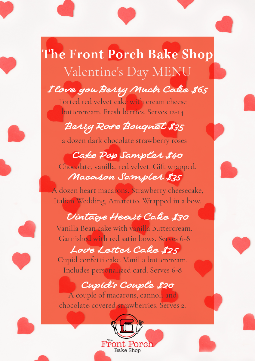 ALL ORDERS WILL BE DELIVERED on Friday, Feb. 13th or Saturday, Friday 14th. Specify delivery time when ordering.